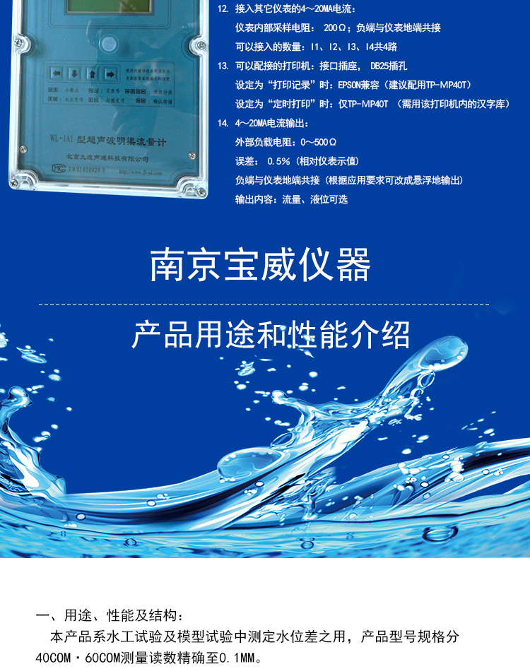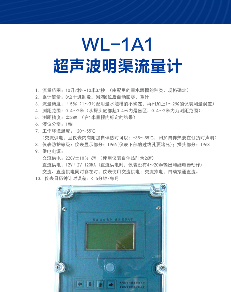 | WL-1A2超(chāo)聲波明渠流(liu)量計 巴歇爾(ěr)槽九波超聲(sheng)波明渠流量(liang)計👄 | |